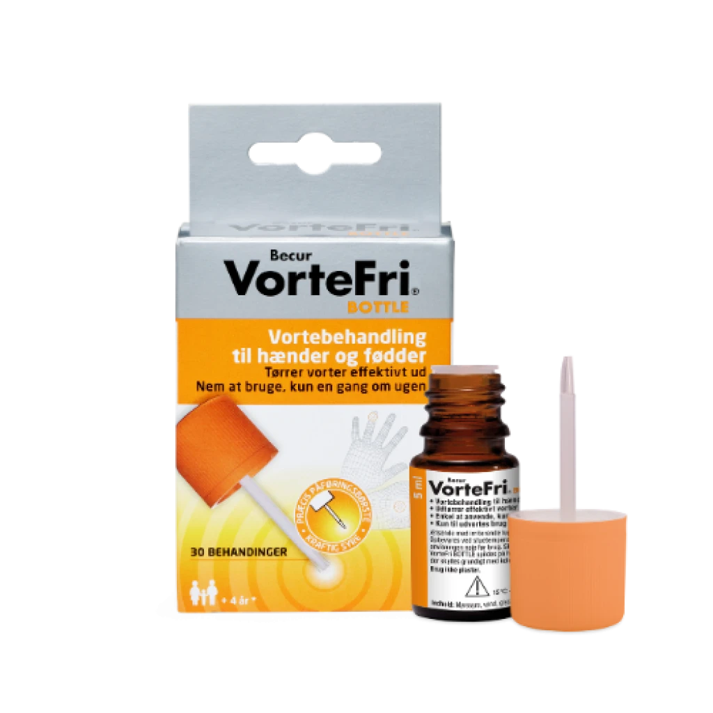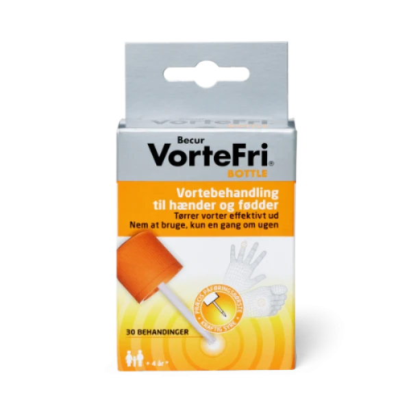 VorteFri® BOTTLE tilbyder en kraftfuld og praktisk løsning til behandling af vorter på hænder, fødder, albuer og knæ. Formuleret med myresyre trænger den dybt ind i vorten og udtørrer den indefra, hvilket giver et effektivt resultat. Egnet til brug for hele familien fra 4 år og opefter.