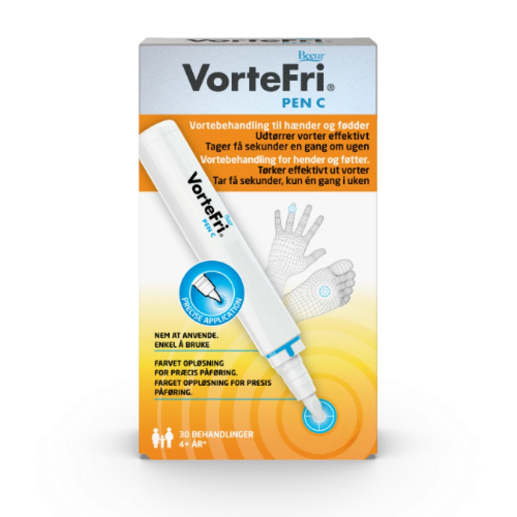 Må ikke anvendes på ansigtsvorter, kønsvorter, vandvorter (mollusker), modermærker, ligtorne, hård hud eller andre hudafvigelser. Kontakt lægen, hvis du er i tvivl om diagnosen. Dæk ikke vorten med plaster efter behandling med VorteFri® PEN C. Brug af plaster efter behandling kan skade huden. Beskyt ikke den normale hud omkring vorten med olier eller lotions umiddelbart før, under eller efter påføring. Anvend ikke produktet, hvis vorten, der behandles, bliver øm, bløder, eller hvis huden bliver irriteret. Afbryd behandlingen, indtil huden er helet. Kombiner ikke VorteFri® PEN C med andre vortebehandlinger. Anvend ikke VorteFri® PEN C, hvis du er allergisk over for nogen af indholdsstofferne. Velegnet til børn fra 4 år og opefter. Anvend ikke VorteFri® PEN C, hvis pennen og/eller spidsen er synligt beskadiget.